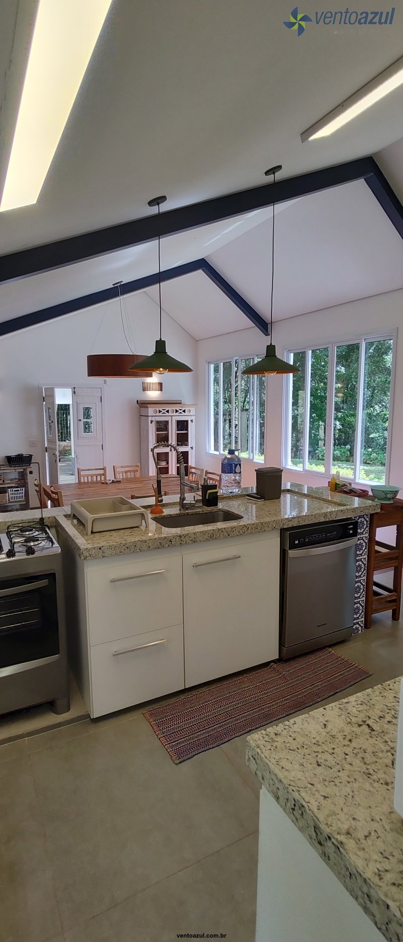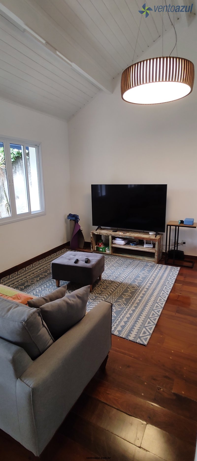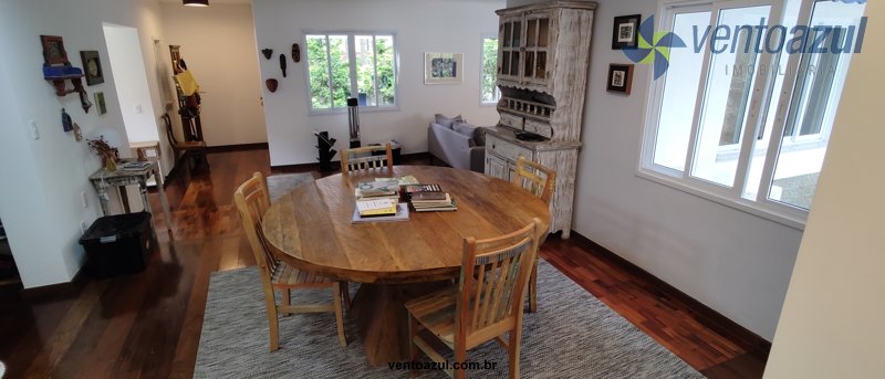 Living: Salas de TV e estar com lareira, cozinha e sala de jantar integradas.