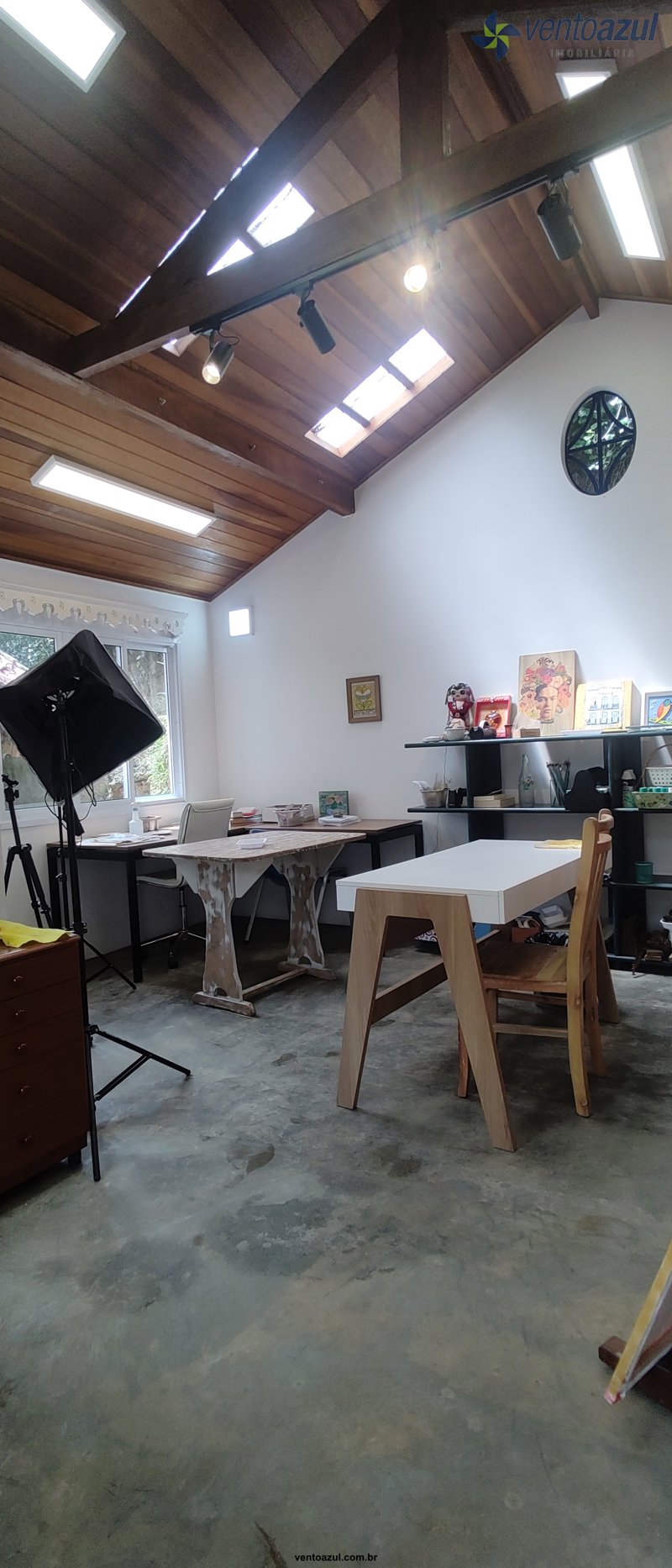 Ateliê / Estúdio: Espaço criativo iluminado.